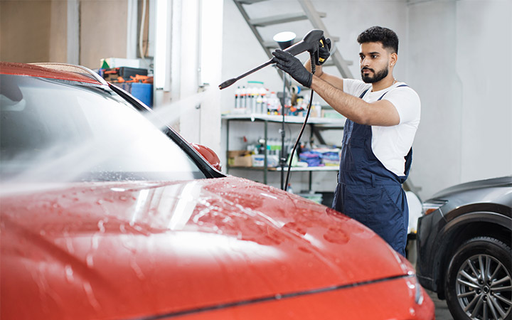 Prvi korak pred poliranjem je temeljito pranje avtomobila, da odstranite umazanijo, prah in vse drugo, kar bi lahko oviralo postopek poliranja. Parkirajte na senčnem mestu, stran od neposredne sončne svetlobe, da preprečite prehitro sušenje površine vozila.