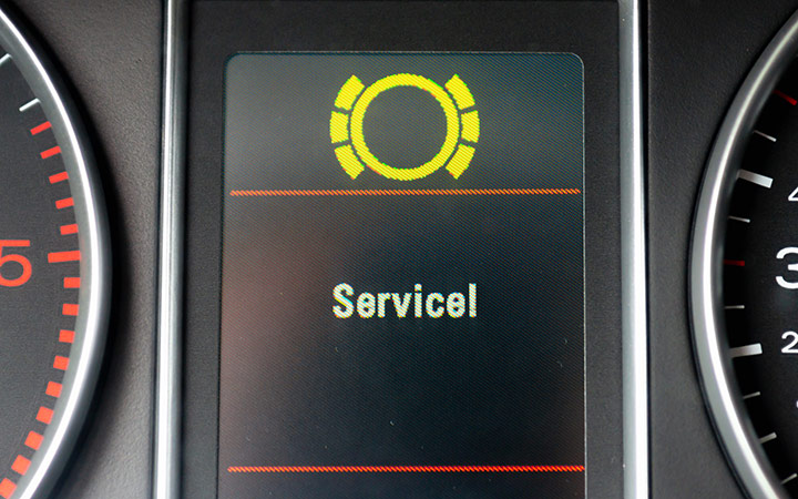 Opozorilna lučka na armaturni plošči, ki opozarja na servis.